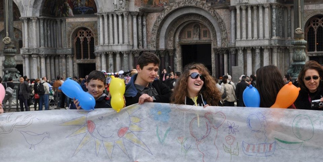 „Голямото рисуване” премина границите на България и се случи на емблематичния за Венеция площад „Сан Марко”. Пред Двореца на Дожите артистичният екип Кунка Бакалова – Момчил Николов, за чиито изложби на картини, нарисувани с ориз, F2F TV ви разказа миналата година, този път организира истинска атракция за посетителите на венецианския площад. С участието на родители разпъна платно за децата от клуб „Пленер” в Пловдив, както и за случайни минувачи. Необичайната атмосфера провокира децата и те рисуваха вдъхновено. Части от платното бяха нарязани на картини и отнесени за спомен от любопитни италианци.
