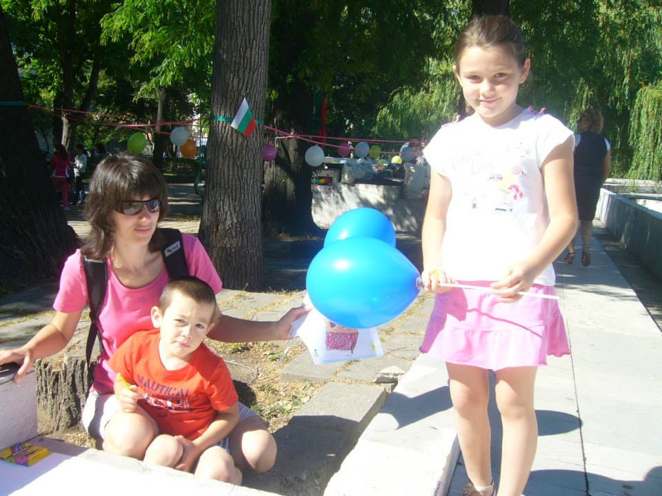 За да се случи цветния първия юни, са раздадени 100 блокчета, 100 кутии с пастели, 100 кутии с дебели тебешири, толкова шапки и тениски, над 500 книжки за оцветяване, плюшени играчки, въженца за скачане, домино, тефтерчета, бинокли, пъзели, стикери, водни боички… Като пресметнете – последните си тръгнаха без награди. Дори