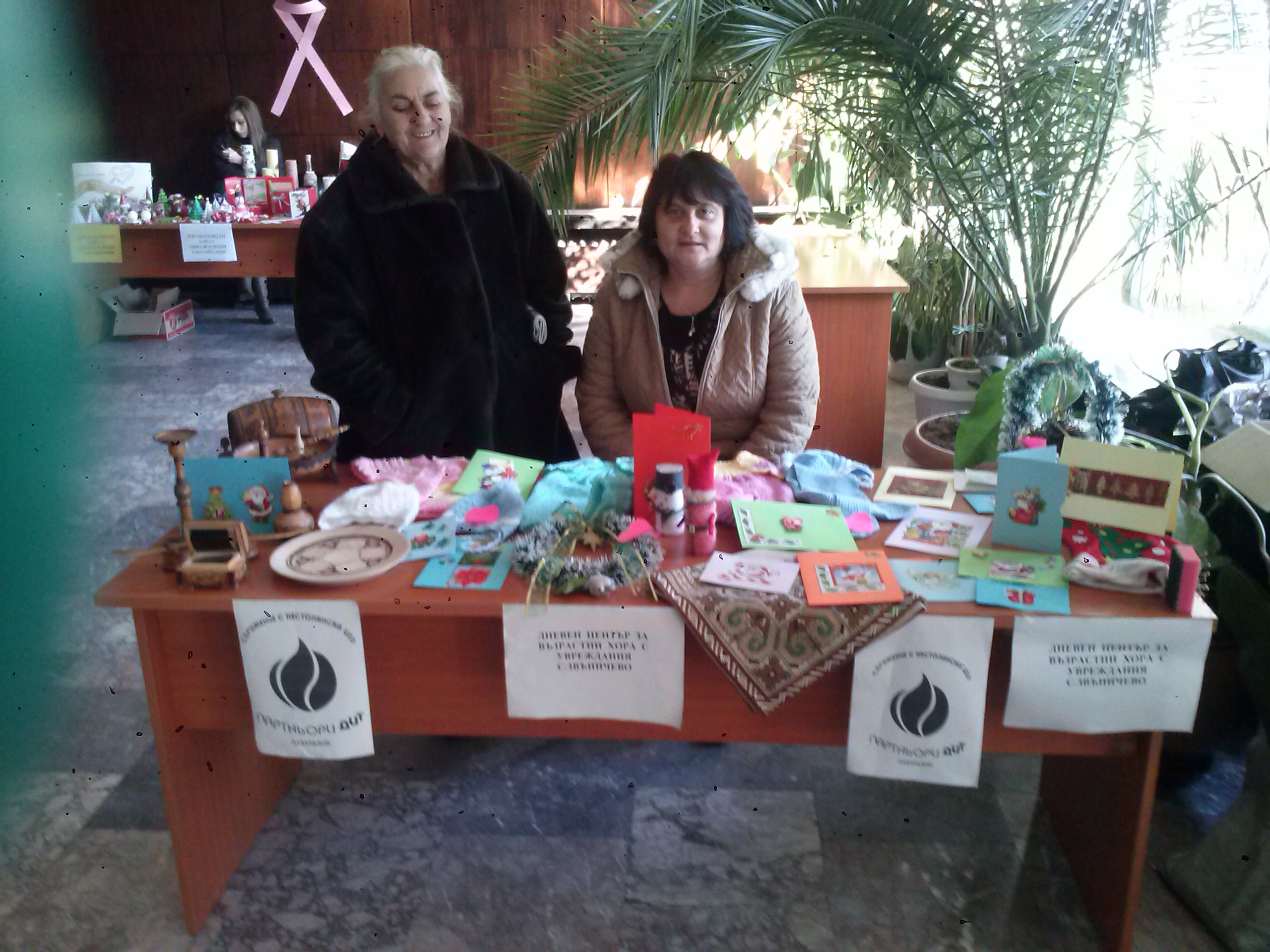 Kартички, картини и различни предмети, пропити с коледен дух, внесоха топлина в мрачното фиайе на зала „ Маестро Георги Атанасов” в Пазарджик. Те са изработени от хора с различни увреждания и на различна възраст, а финесът и прецизността, с която са изпипани детайлите по изделията, впечатляват. Поводът да се подредят тук в пъстър Коледен базар беше международния ден на хората с увреждания 3 декември, а средствата, събрани от продажбата на предметите, ще се използват за дейностите на дружествата на хора с увреждания в региона и за подпомагане възстановяването и развитието на хората в тях.