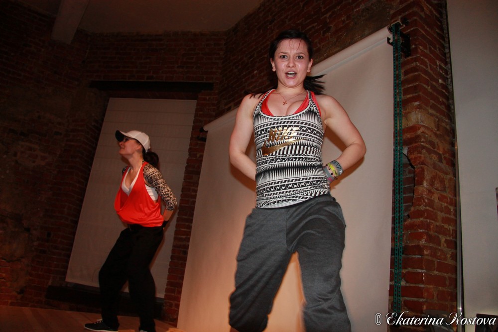 На зумба тренировката в Клуб Тотал Спорт Ирина беше на първия ред, а сред участниците в парти-класа можеше да се забалежат една друга още Екатерина Костова от F2F TV и галеристката Таня Банкова от журито на състезанието за зумба лице. Танци представи и гост инструкторката Цветелина Делчева, която преподава зумба в Австрия.