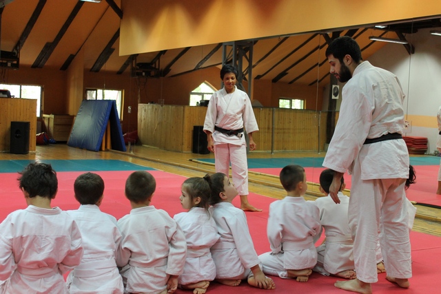 Тук, в Клуб Тотал Спорт, двамата вече седма година посвещават в пътя на айкидо деца и възрастни. Освен с възрастни, Лусиана работи и с групата на малките. В нея е й 8 годишната им дъщеря Зои. Първокласничката вече е защитила жълт колан и майка й признава, че не я дели и не я поощрява повече от другите деца, напротив. Определя се за строга, защото в айкидо е важна концентрацията. Децата трябва активно да слушат, за да могат да изпълнят техниката – обяснява. След това трябва да се потрудят като сгънат по определен начин кимоното.Прави ми впечатление, че са много доволни, когато могат да научат нещо ново и да го покажат. Аз ги поощрявам тогава – допълва Лусиана. Поощрението се състои в това да даде възможност на най-добрия да води тренировка с нея. Така за всеки от тях е стимул да е семпай.