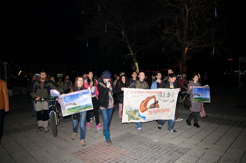 Защитата от строежи на българската природа изведе стотици хора на площадите и улиците в 10 града у нас тази вечер. Организирани чрез социалната мрежа, на площада в Пловдив приридозащитници разпънаха плакати с надписи: Срещу строителния тероризъм! Долу ръцете от Странджа! “„Върховният” административен съд се подигра на всички – петчленният състав на ВАС окончателно взе необжалваемо решение и отмени решение на предишния тричленен състав, с което се обявяваше за незаконосъобразен Общият устойствен план на община Царево. Решението на съда значи почти 100% застрояване на крайбрежието на Царево, Арапя, Корал, на големи части от Природен парк Странджа!” – коментираха в мрежата организаторите на протеста.