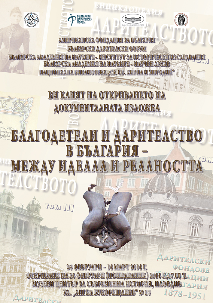 Различните лица на благотворителността в края на ХІХ до средата на ХХ в. – подредени в изложба на фотографии и документи – открива в понеделник, 24 февруари, Музейният център за съвременна история към Регионален исторически музей – Пловдив (ул. Ангел Букуртещлиев 14). В експозицията „Благодетели и дарителство в България – между идеала и реалността” оживяват ликовете на плеядата родолюбиви българи, предоставили имоти и средства, за да направят „благодеяние” в полза на хората или страната си. Благодарение на тяхната щедрост и отзивчивост се изграждат училища, читалища, библиотеки и паметници, откриват се болници, приюти за сираци и самотни възрастни хора, отпускат се стипендии за образование, дават се пари за наука и култура, за страдащи сънародници, останали извън пределите на отечеството. Всички тези страни на дарителската традиция са показани тематично в отделни табла.