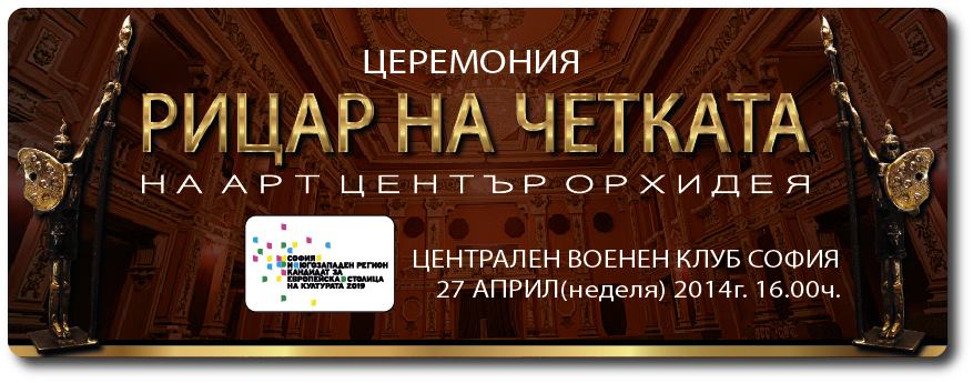 Изявени художници за 2013-та ще получат приза „Рицар на четката” на церемония от 16 часа днес в София. Наградите ще връчи лично кметът на столицата Йорданка Фандъкова. Тя не само ще награди призьорите за „Рицар на публиката”, но и сама ще обяви свой фаворит в специалната категория „Рицар на София”. „Рицар на четката” подкрепя кандидатурата на София за Европейска столица на културата през 2019 г. Затова и по време на церемонията част от евентуалните рицари на четката ще рисуват на живо, като темата ще е „София 2019”.