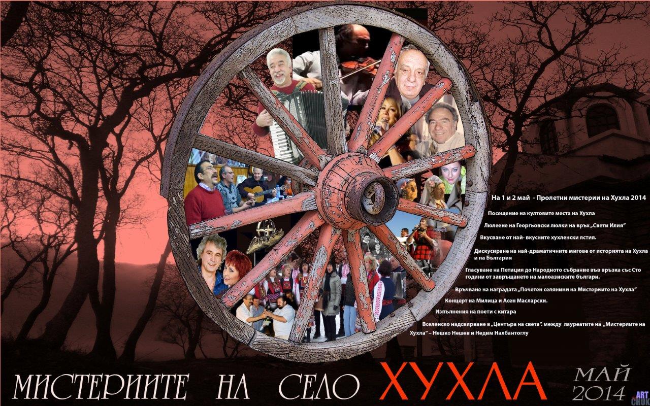 Именно как балканските народи заедно се веселят, а не враждуват, ще демонстрират Майските Мистерии на Хухла 2014. На 2-ри май следобед акордеонистът Нешко Нешев и цигуларят от Турция Недим Налбантоглу с вселенско надсвирване ще накарат мало и голямо да се хване на нашенско хоро, а гости от Гърция ще редуват сиртаки с ръченица.