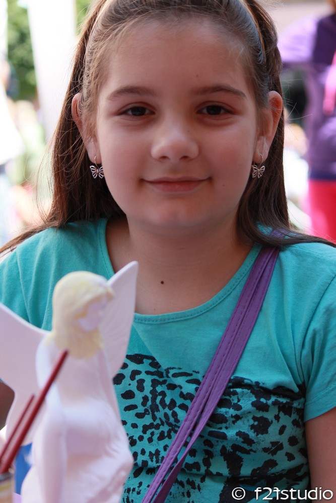 Детският творчески кът, организиран от Асоциаця Муковисцидоза България и доброволците й, сред които най-малката Сиси Касабова, имат за помощници през целия ден ученици от Националната художестена гимназия и ОУ „Кочо Честименски“. Гимназистите рисуват лицата на малчуганите, а по-малките ученици четат приказки от любимите си книжк,и предоставени от Книжарници Хеликон. Към творческия кът тази година се включва с детската си група йога инструкторът Елена Петрова, чиято демонстрация събра овациите на пловдивчани точно в 12 на обяд.