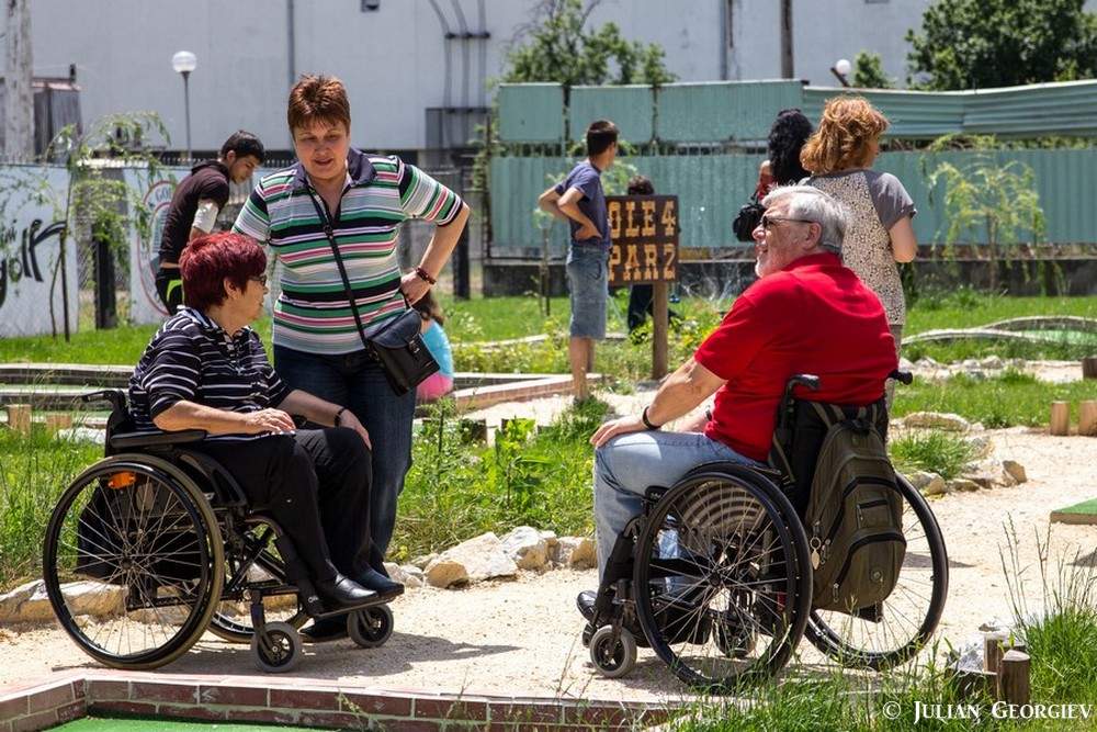 Впечатляващо е да видиш всичко това! Тези хора имат толкова много енергия, която трябва да изразходят, а със спорта го постигат по най-добрия начин – това са първите думи на българката Мая Таушер, един от гостите на първите Летни Спортни игри в Комплекса за социални услуги „Св. Георги“ в Пловдив. Мая и съпругът й Войфрам са тук за първи път, макар че всяка година идват в България. Живеят в Берлин. Там, всъщност, са преминали 40 години от професионалния им стаж като групови ръководители в социално заведение. Сега са пенсионери. Придвижват се в инвалидни колички, но са напълно самостоятелни. В немската столица са работели с хора със специфични поребности от 16 до 65 години.