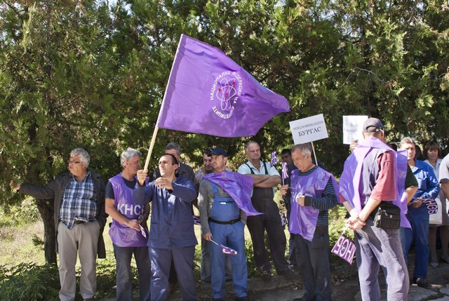 burgas-sta4ka1Работниците от „Топлофикация Бургас” се обявиха срещу неадекватната, според тях,  политика на НЕК и ДКЕВР, които с действията си заплашват работните им места. Около 60 души с отличителните знаци на КНСБ, плакати и знамена се събраха пред входа на предприятието, за да заявят намерението да защитят правото си на труд. Работниците ще протестират и утре от 14 до 15 часа. Производственият процес няма да бъде прекъсван – в часовете на митинга дежурни енергетици ще проследяват производствения цикъл.