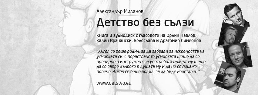 Сборник с разкази за деца, които растат без родители или прекарват част от детството си в поправителни училища, излиза на българския книжен пазар. „Детство без сълзи“ пресъздава в художествен стил реални истории с цел да промени отношението на обществото към децата в риск. Автор на книгата е Александър Миланов, който от години работи в областта на защитата на правата на децата и развитието на приемната грижа, като качествено различна алтернатива на институциите за деца.