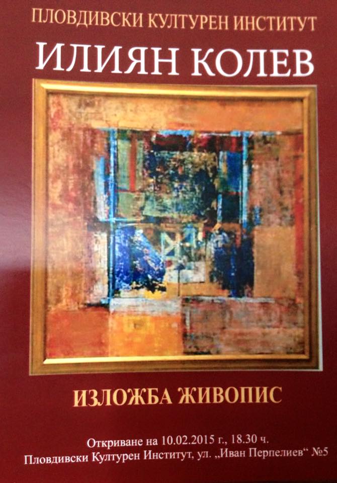 17 платна – масло и акрилни бои – подрежда пловдивският художник Илиян Колев в първата изложба на новия арт център под тепетата – Пловдивски Културен Институт. Експозицията ще бъде открита във вторник, 10 февруари, от 18:30 часа. Творбите на автора посрещат посетителите още от неговия вход, в калдаръмения участък между две църкви – “Св. Петка” и “Св. Параскева”. Топлите тонове привличат поглед още от улицата, а когато застанеш от другата страна на стъклените врати, срещу картините, можеш да откриеш и символиката на формите.