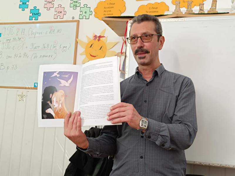 Исторята на написването ѝ и нейният сюжет впечатлиха децата, а илюстрациите от талантливата художничка Стилияна Георгиева предизвикаха шумното им одобрение. Часът прерасна в беседа между приятели, когато и учениците започнаха да споделят своите книжни открития и признанията си за интерес към литературата, и класната им ръководителка Златка Петкова, седнала между тях, зададе въпроси за ценностите, които с книгите сме посяли в децата ни. Четвъртокласниците чуха още разказа ми за пътя на един ръкопис до книга, слушаха и четоха стихове от Терзиев, а в края се скупчиха и за автографи.